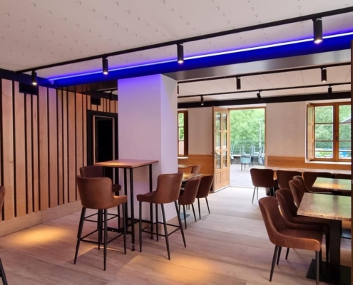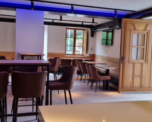 San Juan Grupo ha llevado a cabo recientemente una reforma integral en un recinto hostelero de Eskoriatza, situado en pleno centro en un edificio emblemático, acometiendo la renovación completa de sus instalaciones eléctricas y la sustitución de toda la equipación por nuevos sistemas de última generación. Un proyecto pensado para dar respuesta a las nuevas necesidades del establecimiento, mejorando tanto su funcionalidad como su rendimiento diario y que ha supuesto un nuevo y gratificante reto en cuanto al tiempo de ejecución. De hecho, en poco más de un mes se ha acometido la obra, se han cumplimentado las gestiones administrativas con Iberdrola, se ha legalizado el proyecto y se han obtenido todos los permisos.
